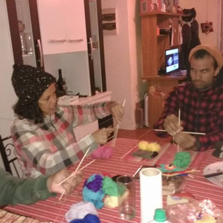 Ahhh que família maravilhosa quando chegamos em sua casa haviam bolos quentinhos com café nos esperando para um lanche, já que chegamos no final da tarde! E à noite deliciosas panquecas recheadas... hummm.... bom demais! e enquanto o jantar não ficava pronto aprendemos a fazer artesanato com linhas coloridas. Agora já podemos vender nossa arte na praia hahahahah.