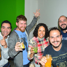 Nesse mesmo dia estavam hospedados no hostel dois brasileiros os meninos do, melevajunto, o Fred foi logo preparando as bebidas e rapidinho tava todo mundo brindando com seus copos coloridos.